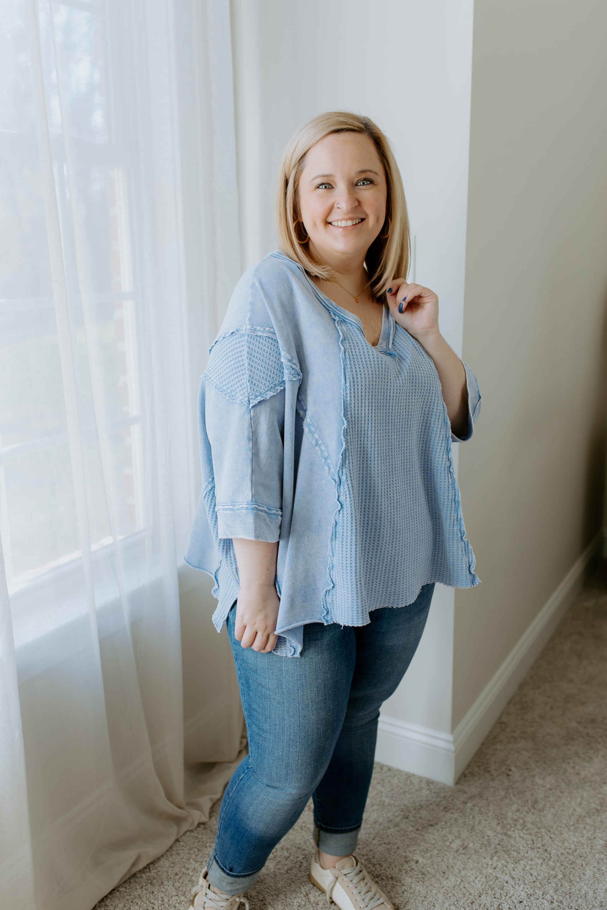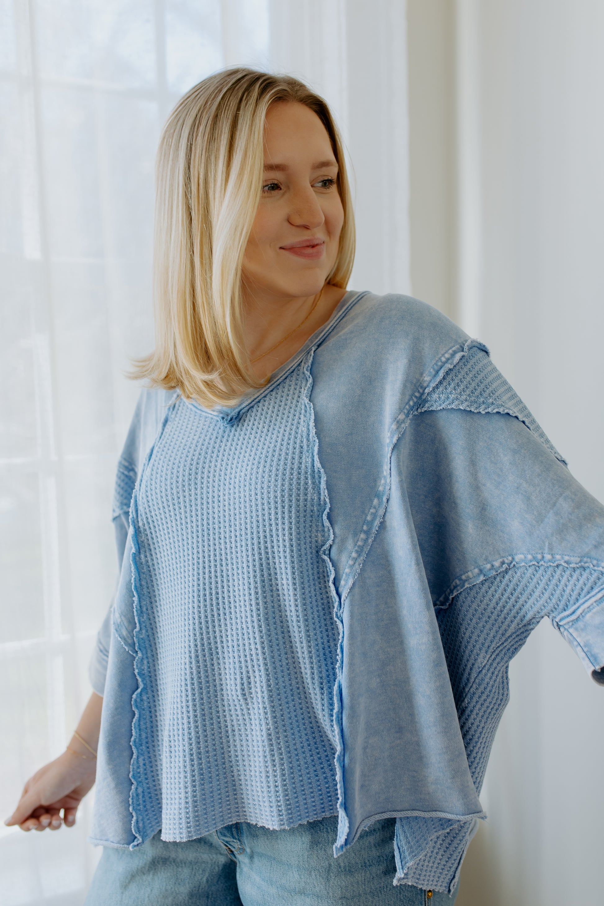 Thermal Mixed Terry Knit Mineral Washed Top | Peri Blue
