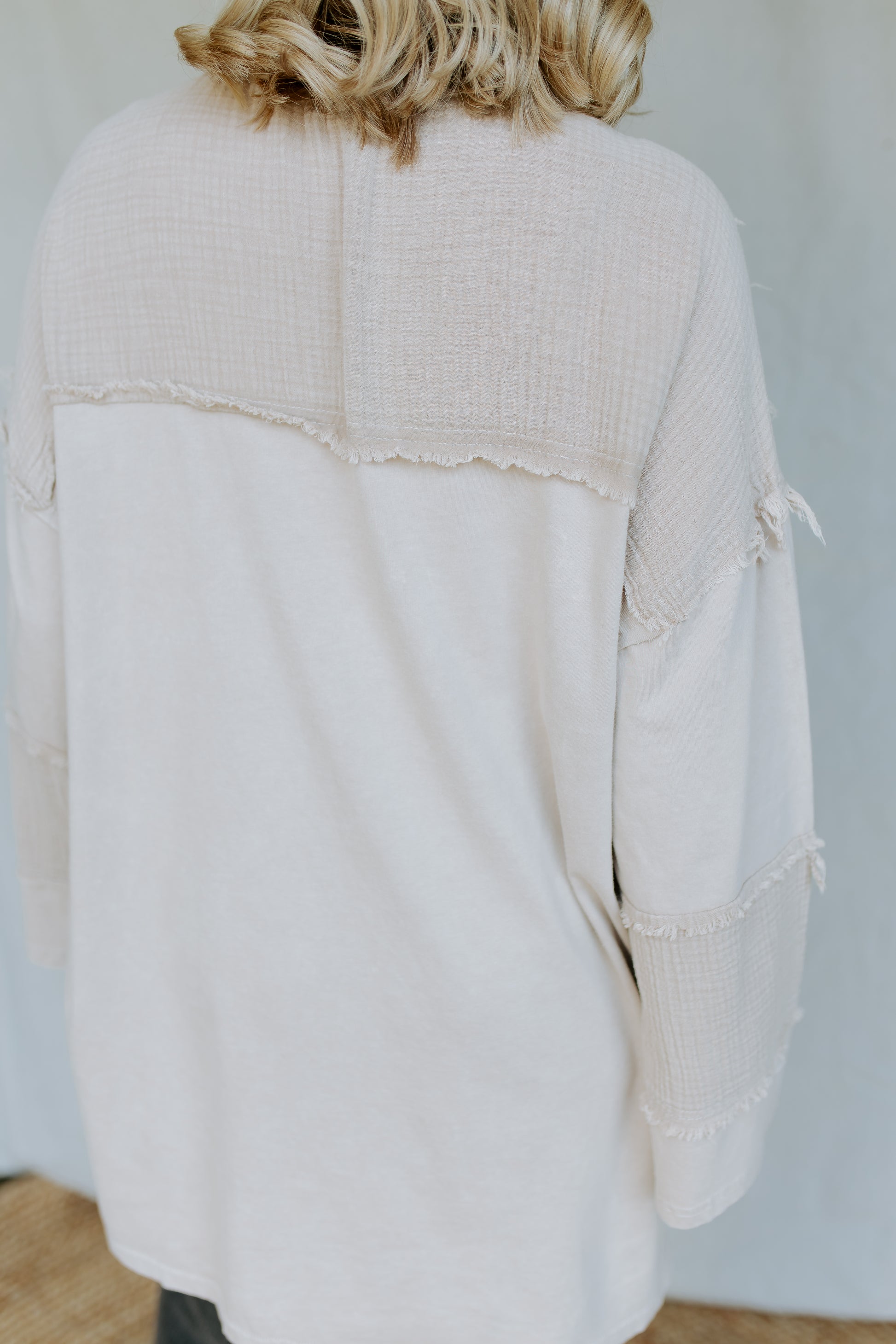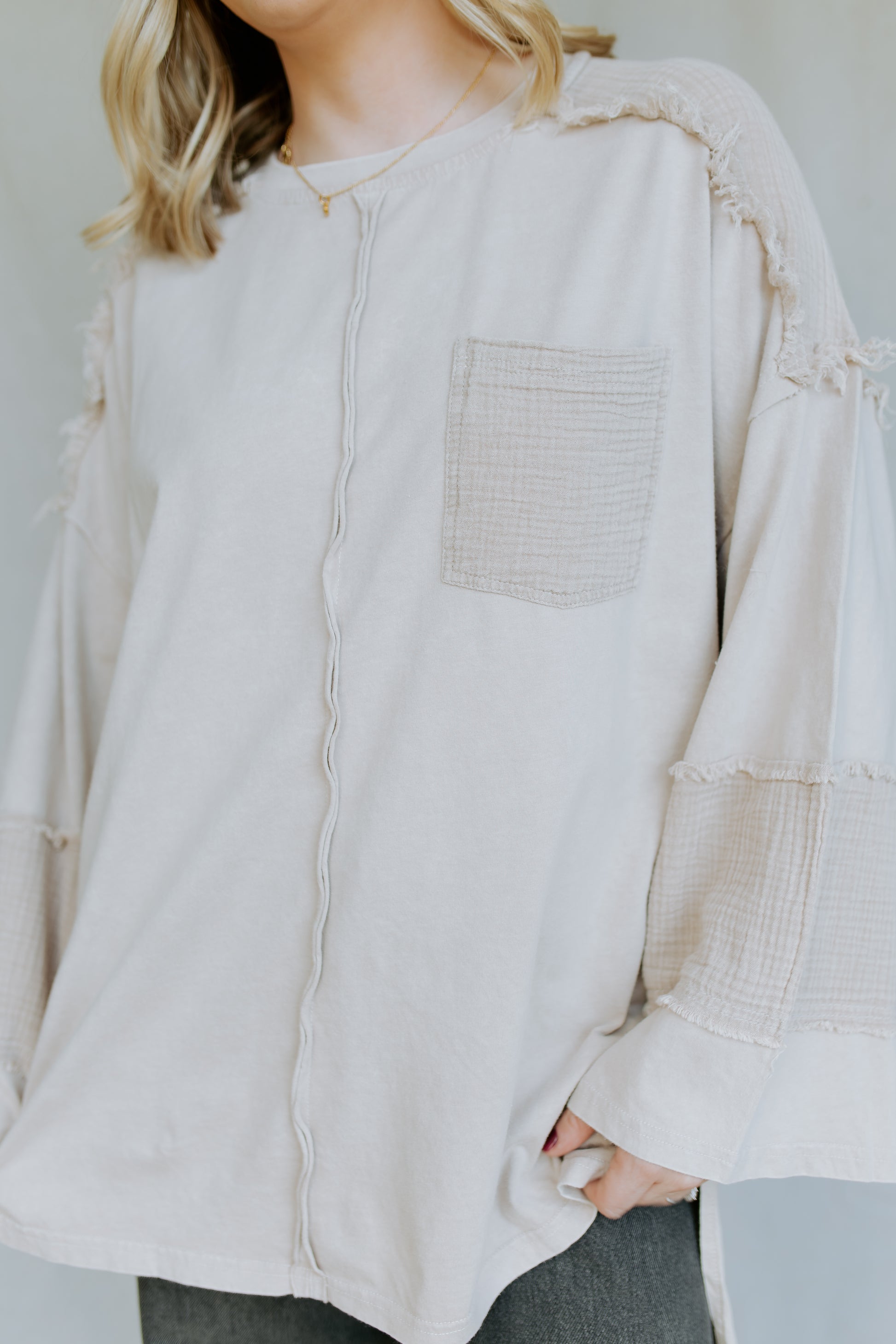 Waffle Blocked Casual Exposed Seam Top | Tan